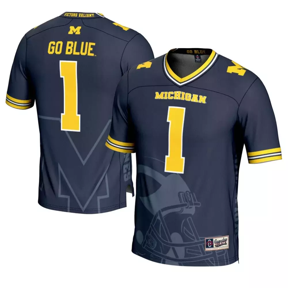 Michigan Wolverines 1 Gameday Greats Jersey | Navy Highlight Print | Fashion Fan Gear for Men, Women & Youth
