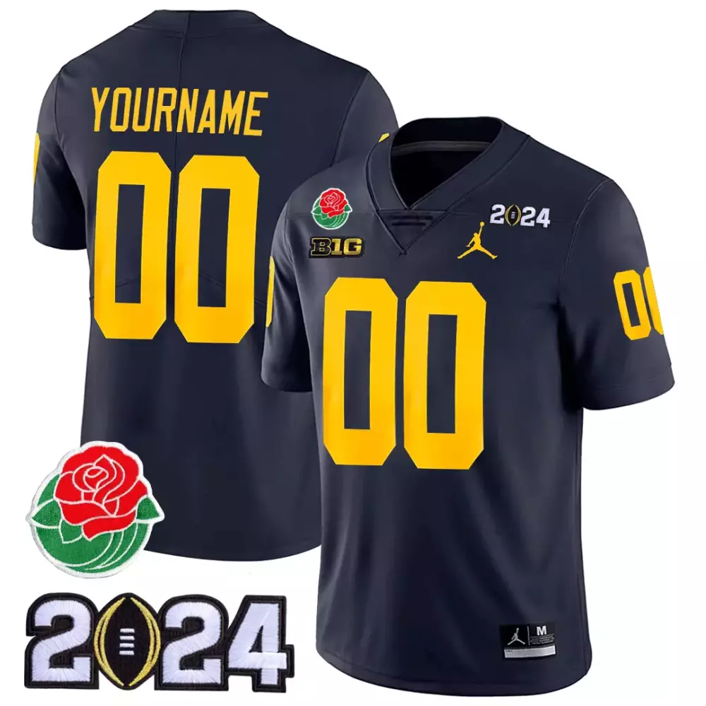 Michigan Wolverines Rose Bowl 1000 Wins Patch Vapor Jersey | Stitched White | Limited Edition Fan Gear for Men, Women & Youth;Michigan Wolverines Rose Bowl 1000 Wins Patch Vapor Jersey | Stitched White Sleeves | Limited Edition Fan Gear for Men, Women & Youth;Michigan Wolverines Rose Bowl 2024 CFP Navy Jersey | Patch Vapor Custom Stitched Fan Gear | For Men, Women & Youth;Michigan Wolverines Rose Bowl 2024 CFP Patch Navy Youth Custom Jersey | All Stitched | Fan Gear for Men, Women & Youth;Michigan Wolverines Rose Bowl 2024 CFP Patch Vapor Custom Jersey | Stitched White | Replica Fan Gear | For Men, Women & Youth