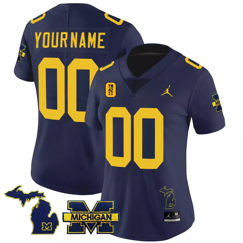 Michigan Wolverines Women’s Jordan Navy All Stitched Vapor Jersey 2023 | For Women;Michigan Wolverines Women’s Jordan Navy All Stitched Vapor Jersey 2023 | For Women;Michigan Wolverines Women’s TM42 Patch Vapor Limited Custom Jersey | Navy Stitched | For Women & Youth;Michigan Wolverines Women’s TM42 Patch Vapor Limited Custom Jersey | Stitched White | Replica Fan Gear | For Men, Women & Youth;Michigan Wolverines Yellow Custom Game Jersey | Rose Bowl Edition | Stitched Fan Gear for Men, Women & Youth