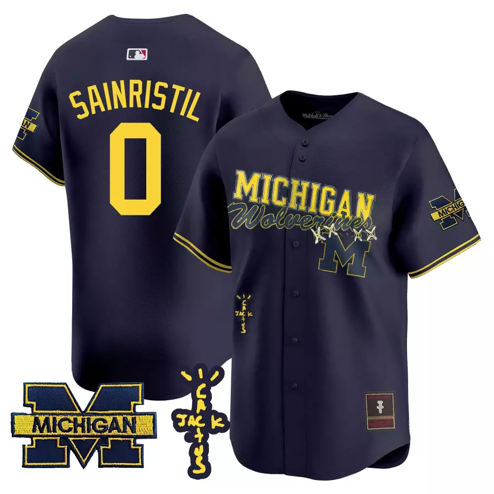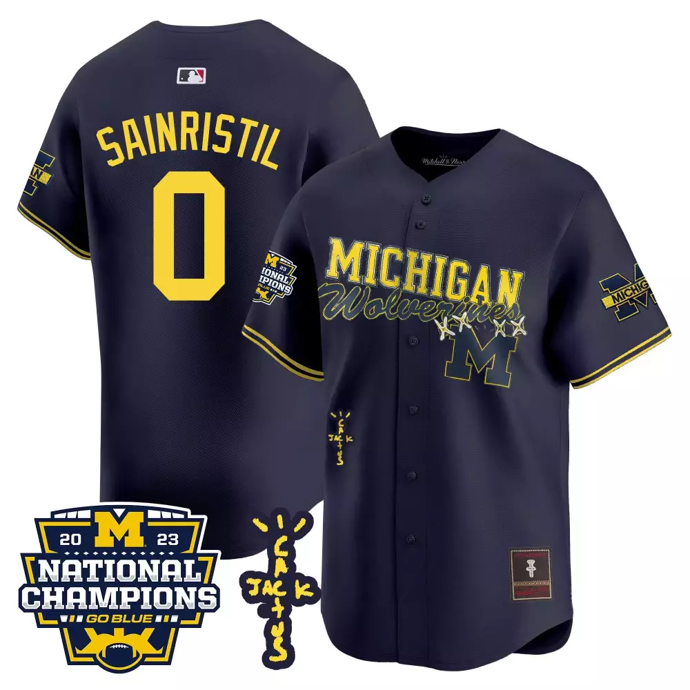 Mike Sainristil Navy Michigan Wolverines 2023 National Champions Patch Vapor Jersey V5 | Stitched | Limited Edition | For Men, Women & Youth;Mike Sainristil Navy Michigan Wolverines 2023 National Champions Rose Bowl Patch Vapor Jersey | Stitched | Replica Fan Gear | For Men, Women & Youth;Mike Sainristil Navy Michigan Wolverines Cactus Jack Baseball Jersey | Stitched | Limited Edition | For Men, Women & Youth;Mike Sainristil Navy Michigan Wolverines Cactus Jack Champions Baseball Jersey | Stitched | Fan Gear | For Men, Women & Youth;Mike Sainristil Women’s Michigan Wolverines 2023 National Champions Patch Vapor Jersey | All Stitched | Limited Edition Fan Gear | For Men, Women & Youth