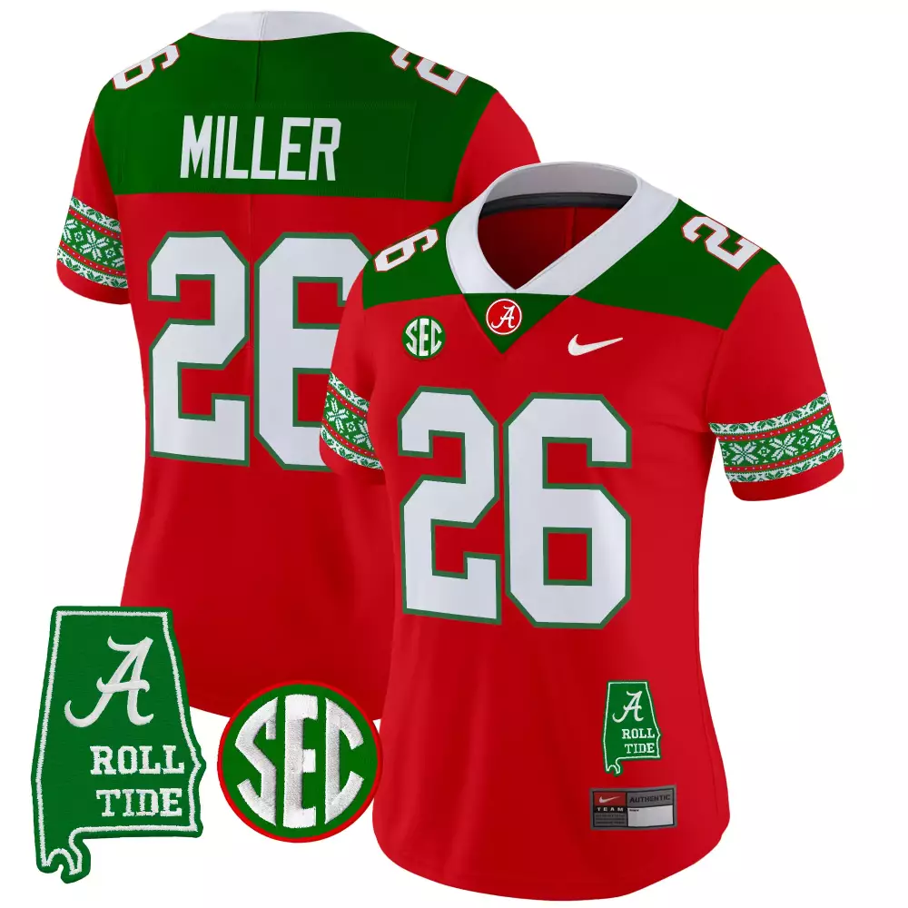 Miller 26 Alabama Crimson Tide 2023 White Stitched Jersey | Name Patch | Game Day Outfit for Men, Women & Youth;Miller 26 Alabama Crimson Tide 2024 Green Stitched Jersey | Women’s Name Patch | Limited Edition Fan Gear for Women;Miller 26 Alabama Crimson Tide 2024 Red Christmas Jersey | All Stitched Name Patch | Fan Gear for Women;Miller 26 Alabama Crimson Tide 2025 Black Vapor Limited Jersey | Embroidered Patches | Fan Gear for Men, Women & Youth;Miller 26 Alabama Crimson Tide 2025 Red Vapor Limited Jersey | Embroidered Patches | Fan Gear for Men, Women & Youth