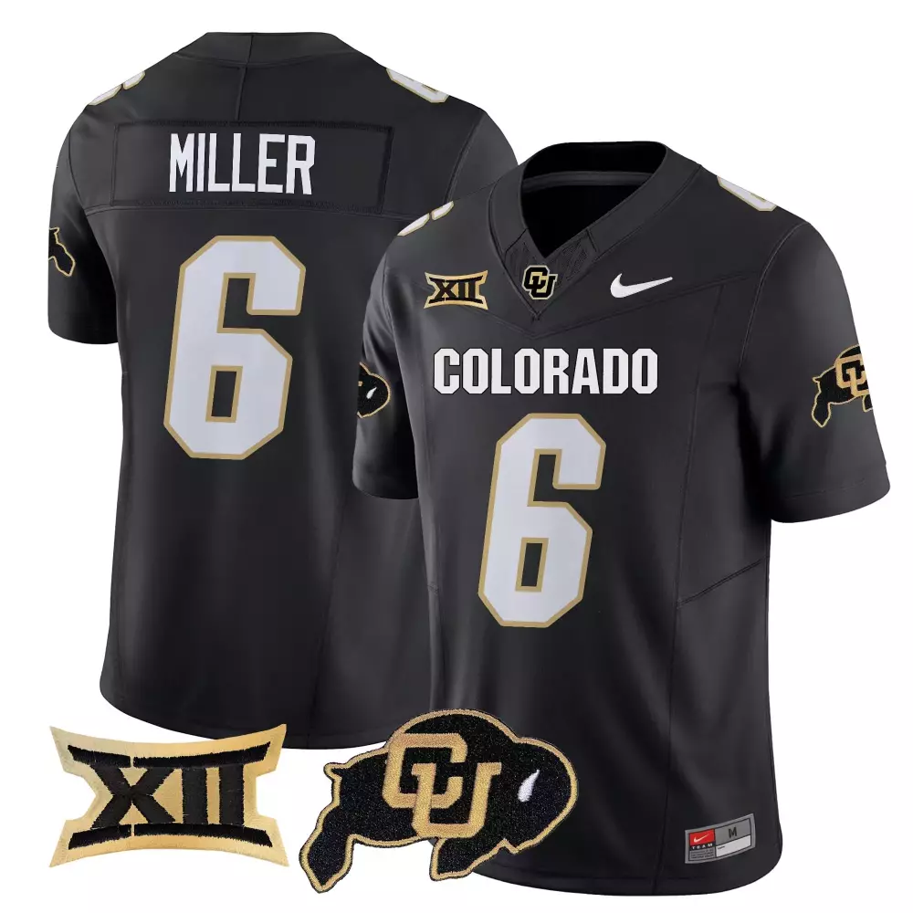 Miller 4 Colorado Buffaloes White Vapor Jersey 2025 | Stitched Style with Embroidered XII Patch | Fan Gear for Men, Women & Youth;Miller 4 Colorado Buffaloes White Vapor Stitched Jersey 2025 | Embroidered Patches | Game Day Outfit for Men, Women & Youth;Miller 6 Colorado Buffaloes Men’s Stitched Jersey | Limited Edition Gold with Name Patch 2025 | Fan Gear for Game Day | For Men, Women & Youth;Miller 6 Men’s Black Colorado Buffaloes Vapor Limited Jersey | 2025 Stitched Embroidered Patch | Game Day Outfit for Fans | For Men, Women & Youth;Miller 6 Men’s Black Stitched Jersey | Colorado Buffaloes 2025 with Name Patch | Game Day Outfit for Fans | For Men, Women & Youth