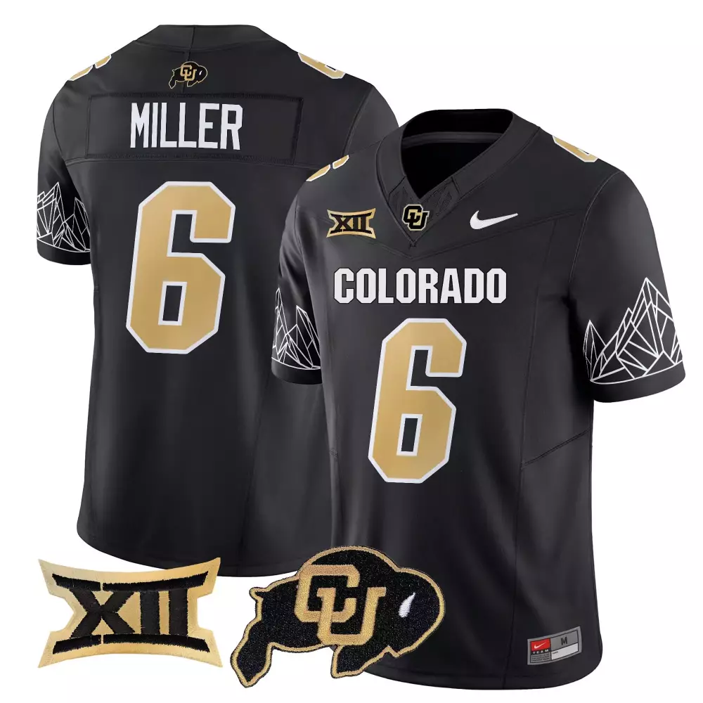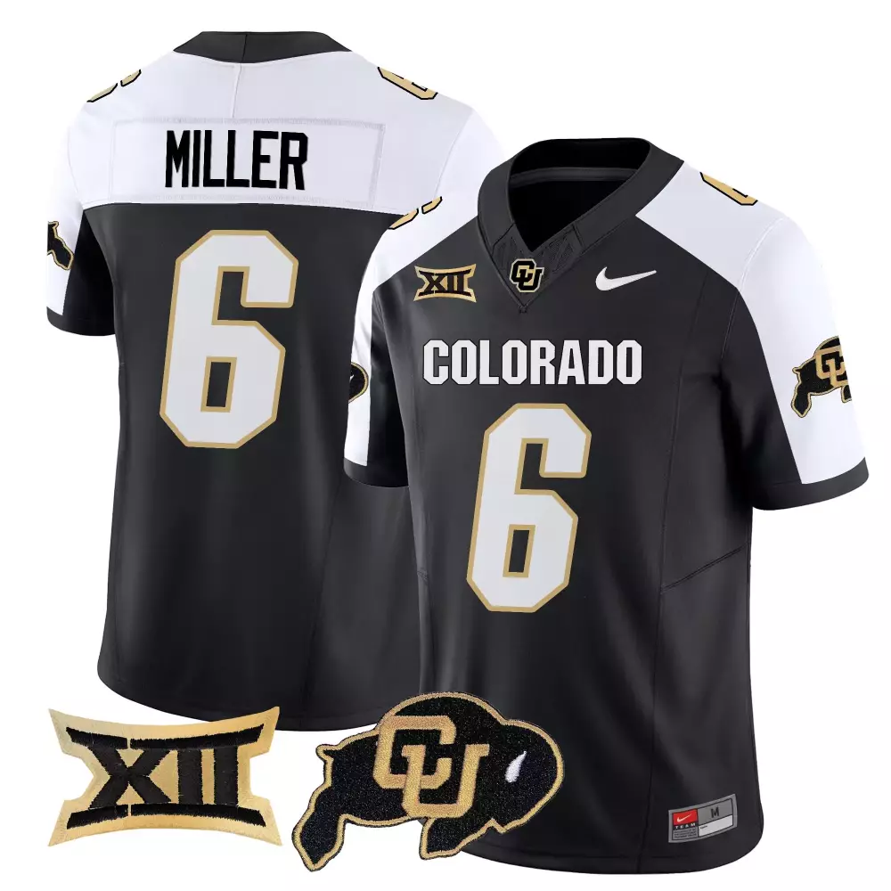 Miller 6 Men’s Black Stitched Jersey | Colorado Buffaloes 2025 with Name Patch XII | Fan Gear for Game Day | For Men, Women & Youth;Miller 6 Men’s Colorado Buffaloes 2025 Vapor Limited Jersey | White with Embroidered XII Patch | Fan Gear for Game Day | For Men, Women & Youth;Miller 6 Men’s Stitched Jersey | Colorado Buffaloes Black & White 2025 with Name Patches | Game Day Outfit | For Men, Women & Youth;Miller 6 Men’s Stitched Jersey | Colorado Buffaloes Black & White Name Patch 2025 | Limited Edition Fan Gear | For Men, Women & Youth;Miller 6 Men’s Stitched Jersey | Colorado Buffaloes Gold 2025 with Name Patch XII | Game Day Outfit | For Men, Women & Youth