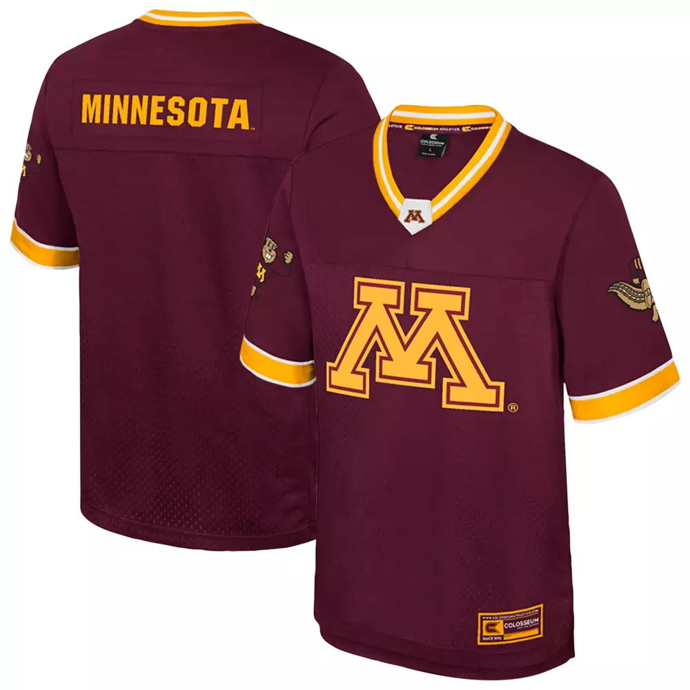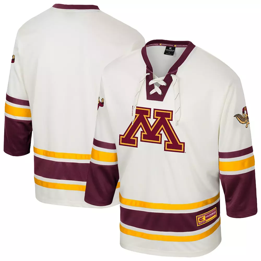 minnesota golden gophers ccm skating goldy authentic hockey jersey gold;minnesota golden gophers colosseum nothing but the hits football jersey maroon;minnesota golden gophers colosseum puck proud fashion hockey jersey cream;minnesota golden gophers gameday greats unisex 1 lightweight volleyball fashion jersey gold;minnesota golden gophers gameday greats unisex lightweight collegiate men s basketball nil pick a player fashion jersey
