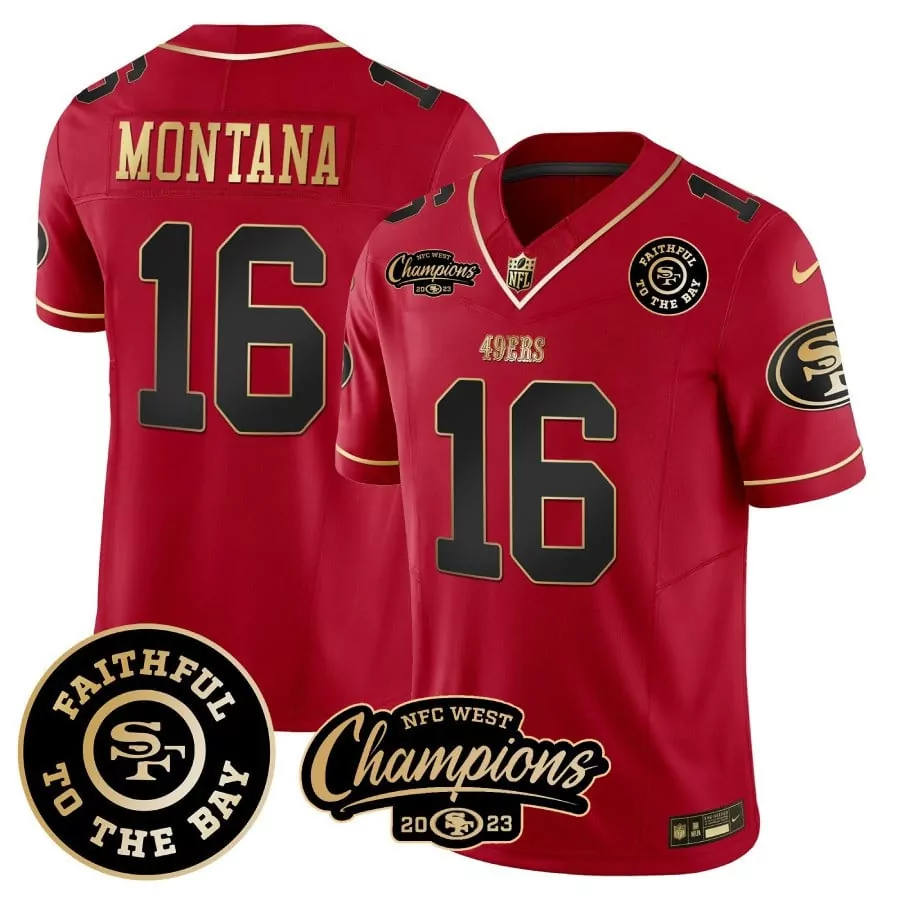 Montana San Francisco 49ers Men’s Jersey | Faithful to the Bay Patch | Vapor Design Fan Gear | For Men, Women & Youth;Montana San Francisco 49ers Men’s Jersey | Faithful to the Bay Patch | Vapor Design Fan Gear | For Men, Women & Youth;Montana San Francisco 49ers Men’s Red Jersey | Classic Design | Fan Gear | For Men, Women & Youth;Montana San Francisco 49ers Men’s Throwback Jersey | 75th Anniversary Patch | Vapor Limited Fan Gear | For Men, Women & Youth;Montana San Francisco 49ers Men’s Vapor Limited Jersey | NFC West Champs Edition | Fan Gear | For Men, Women & Youth