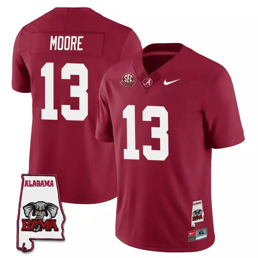 Moore 13 Alabama Crimson Tide Red Stitched Jersey | 2023 Name Patch | Limited Edition | For Men, Women & Youth