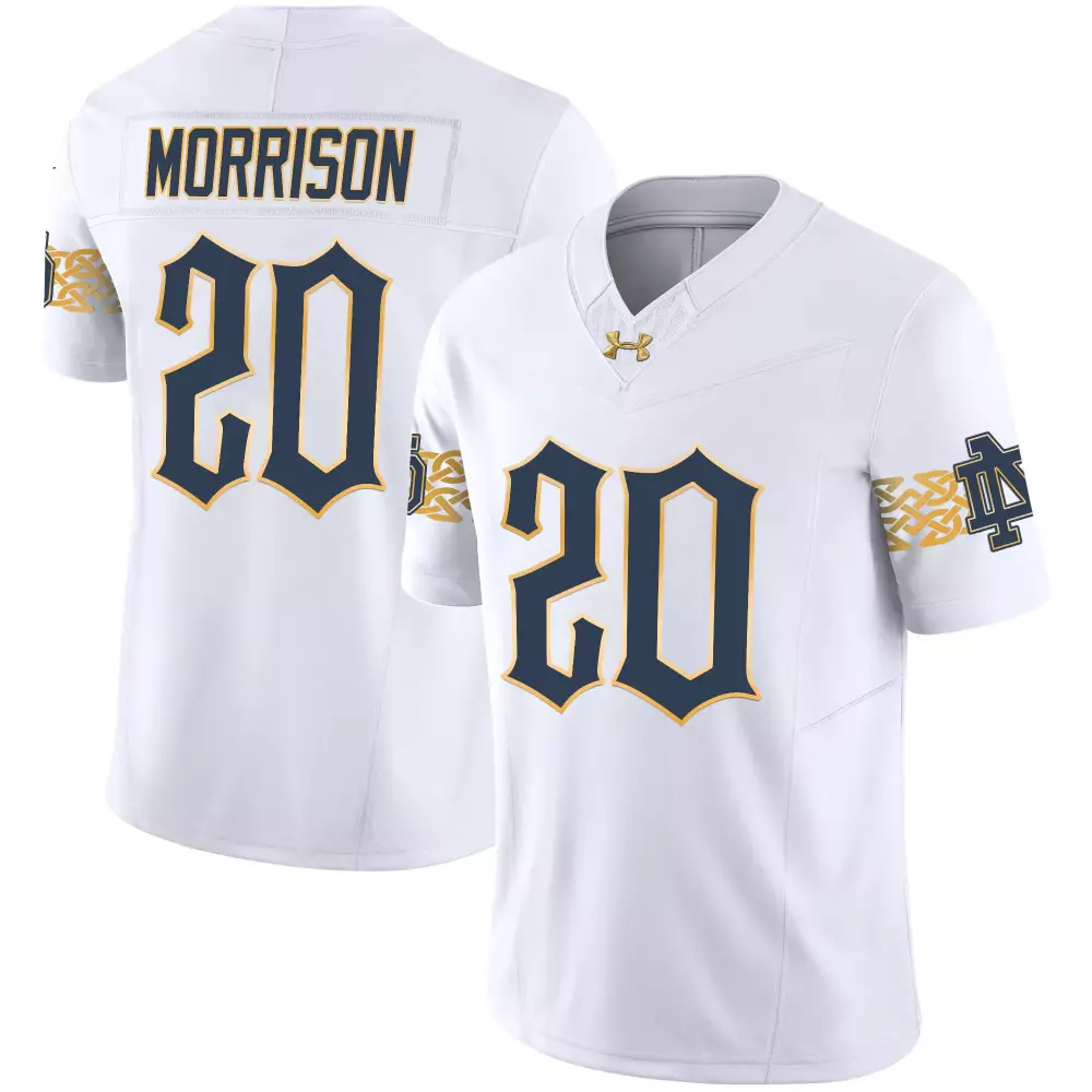 Morrison 20 Notre Dame 2023 Gold All Stitched Vapor Jersey with Patch | Fan Gear for Game Day | For Men, Women & Youth;Morrison 20 Notre Dame 2023 Stitched Vapor Jersey | Navy Quality Edition | Limited Edition Fan Gear | For Men, Women & Youth;Morrison 20 Notre Dame 2023 Stitched Vapor Jersey | White Edition | Replica Fan Gear | For Men, Women & Youth;Notre Dame 0 2023 Stitched Vapor Jersey | Gray Edition for Men | Limited Edition Fan Gear | For Men, Women & Youth;Notre Dame 00 2023 Stitched Vapor Jersey | Navy Gold Design Style | Replica Fan Gear | For Men, Women & Youth