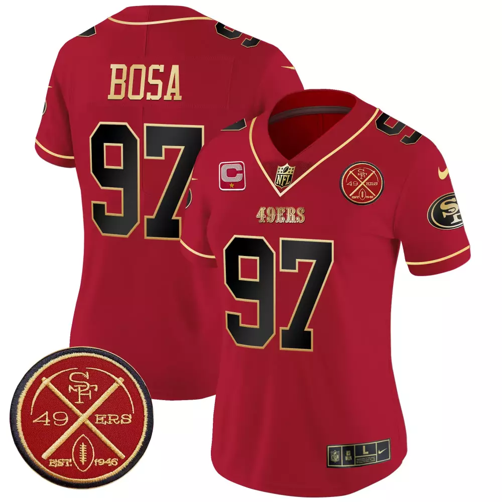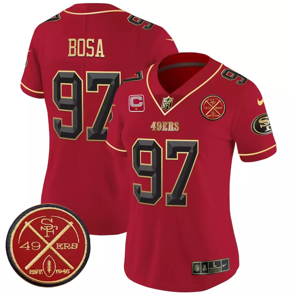 Mykel Williams San Francisco 49ers Scarlet Game Jersey | Team Gear for Men, Women & Youth | Ideal Fan Gear;Navy San Francisco 49ers 2024 Salute to Service Jersey | All Stitched Vapor Limited Custom | For Men, Women & Youth;Nick Bosa San Francisco 49ers 1946 Patch Women’s Jersey | Scarlet Gold Vapor Limited Edition | Fan Gear for Women & Youth;Nick Bosa San Francisco 49ers 1946 Patch Women’s Jersey | Scarlet Limited Edition | Fan Gear for Women & Youth;Nick Bosa San Francisco 49ers 1946 Patch Women’s Jersey V2 | Scarlet Limited Edition | Fan Gear for Women & Youth