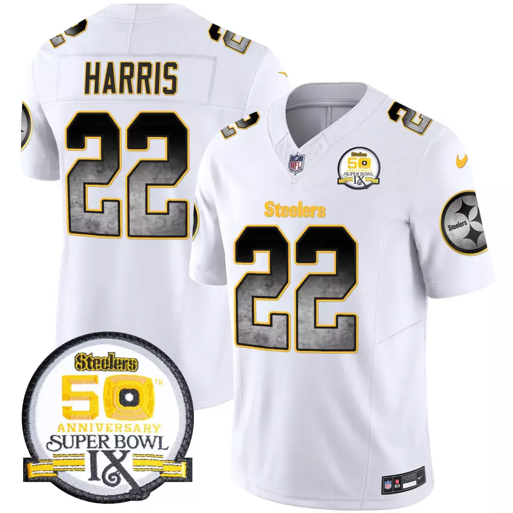 Najee Harris Men’s Pittsburgh Steelers 50th Anniversary Super Bowl IX Vapor Limited Jersey V2 | White Stitched | For Men, Women & Youth