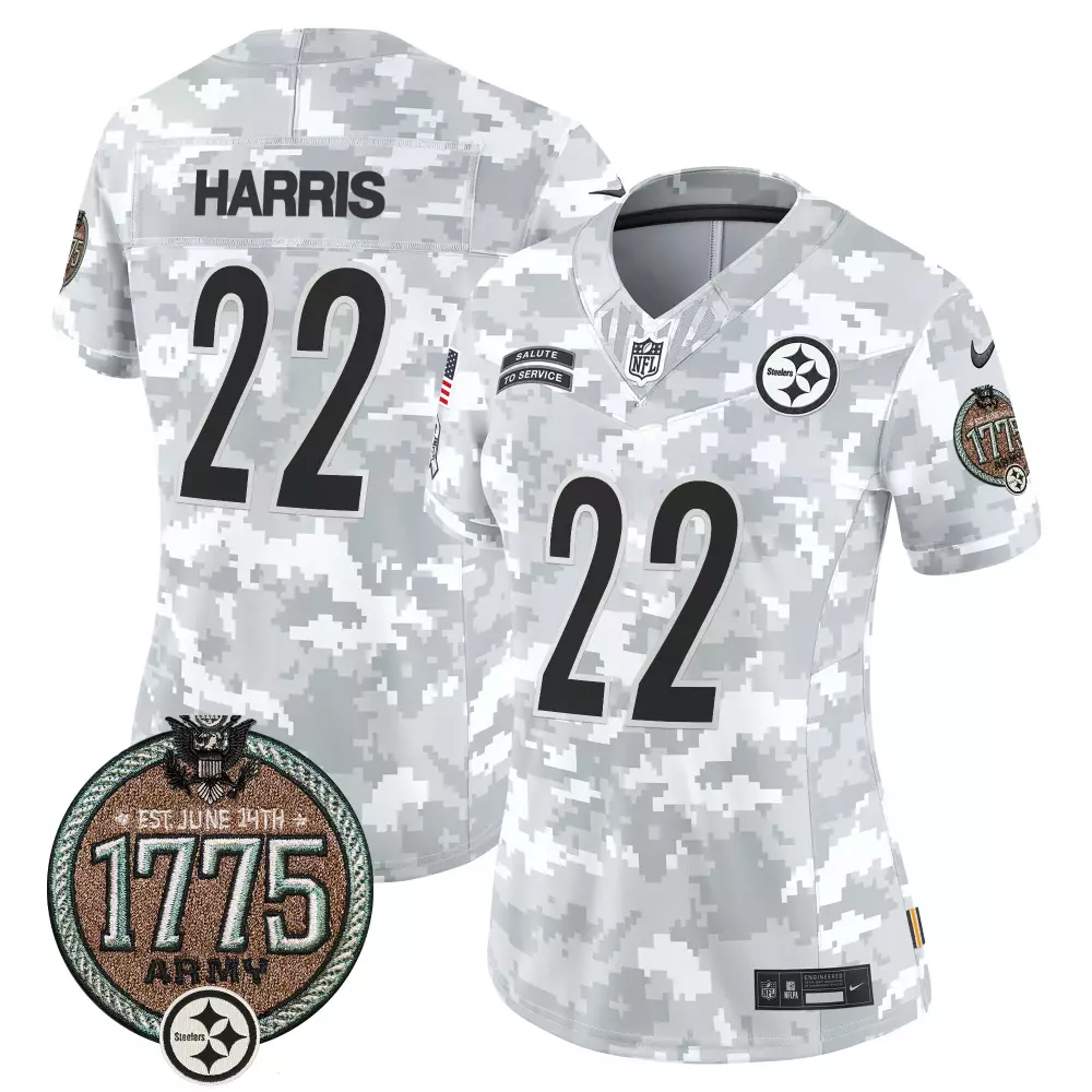 Najee Harris Pittsburgh Steelers Women’s Alternate Arch Smoke Home Jersey | Stitched | For Women;Najee Harris Pittsburgh Steelers Women’s Alternate Arch Smoke Vapor Jersey | Stitched | For Women;Najee Harris Pittsburgh Steelers Women’s Alternate Gold Jersey | DMR Patch | Limited Edition Fan Gear | For Women;Najee Harris Pittsburgh Steelers Women’s Army Salute to Service Jersey | 2024 Edition | For Women;Najee Harris Pittsburgh Steelers Women’s Black Gold Jersey | All Stitched Fan Gear for Game Day | For Men, Women & Youth