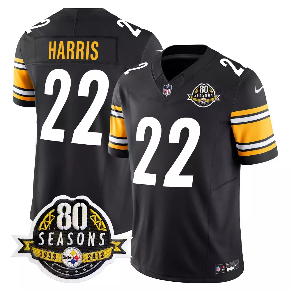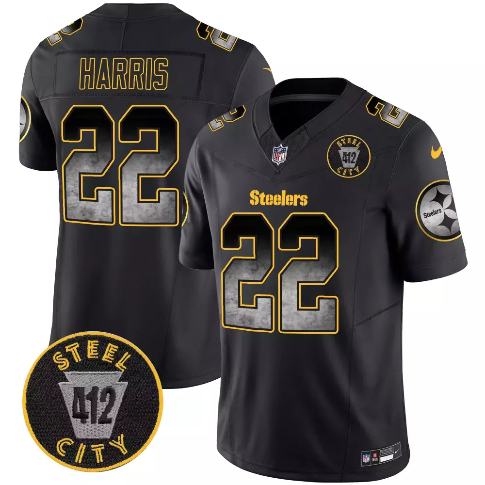 Najee Harris Steelers Black Men’s 50th Anniversary Jersey | Vapor Limited Edition | For Men, Women & Youth;Najee Harris Steelers Black Men’s 80th Anniversary Jersey | Vapor Limited Stitched | Fan Gear for All;Najee Harris Steelers Black Men’s Arch Smoke Home Jersey | Vapor Stitched | Fan Gear for Men, Women & Youth;Najee Harris Steelers Black Men’s Arch Smoke Jersey | 412 Patch Vapor Limited | Perfect for Game Day;Najee Harris Steelers Black Men’s Arch Smoke Jersey | 50th Anniversary Patch | Vapor Limited for All