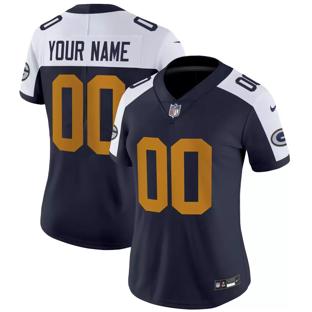 Navy Alternate Green Bay Packers Throwback Custom Jersey | All Stitched Fan Gear for Men, Women & Youth;Navy Alternate Youth Green Bay Packers Throwback Custom Jersey | All Stitched Fan Gear for Kids | Perfect Gift;Navy Custom Name Green Bay Packers Women’s Stitched Vapor Jersey | 2023 Edition | Perfect Fan Gear | For Men, Women & Youth;Navy Custom Stitched Green Bay Packers Women’s Vapor Jersey | 2023 Season Edition | Game Day Outfit | For Men, Women & Youth;Navy Green Bay Packers Throwback 100th Season Patch Vapor Limited Custom Jersey | Fan Gear for Men, Women & Youth