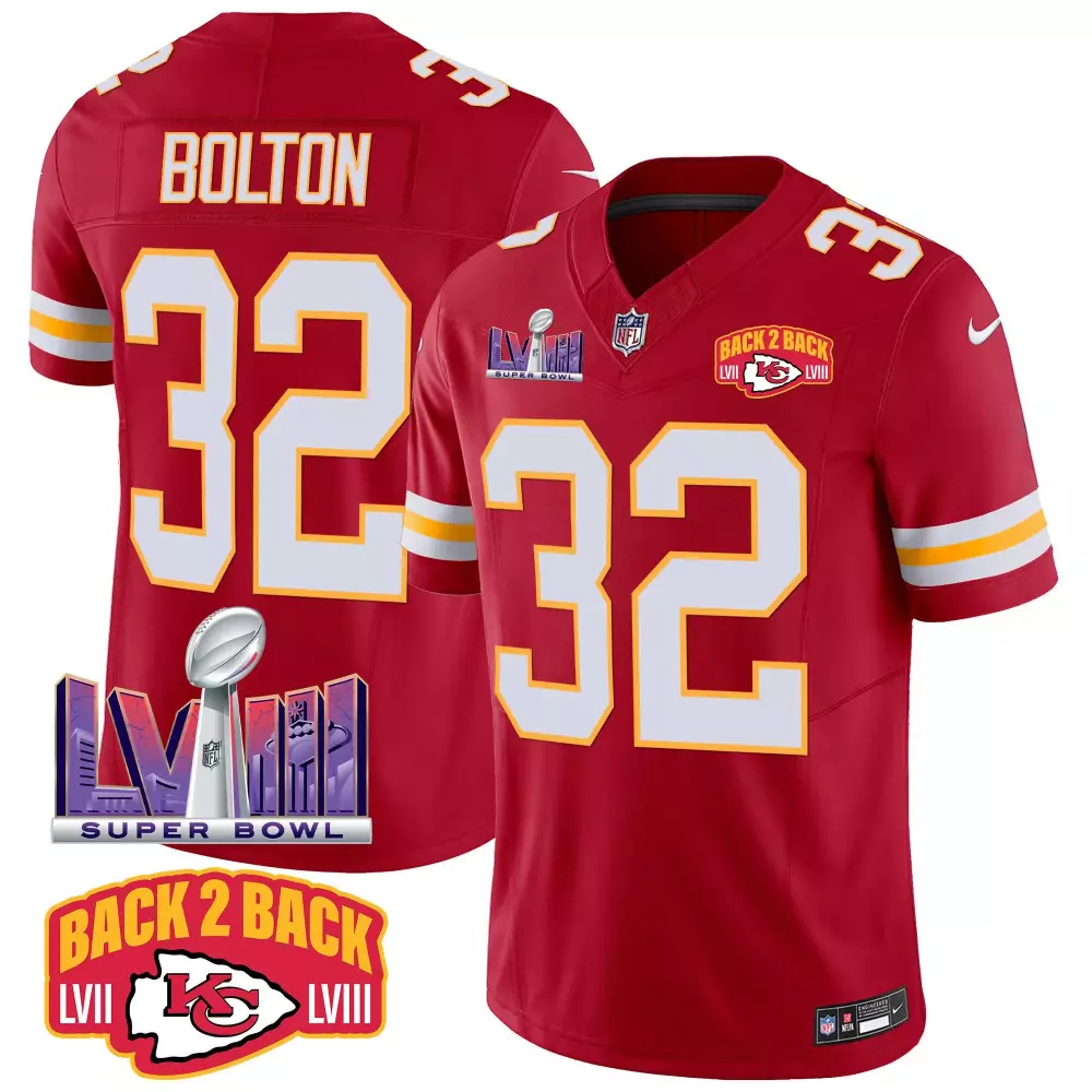 Nick Bolton Kansas City Chiefs Super Bowl LVIII Back 2 Back Patch Vapor Jersey | Black & Red Stitched | Limited Edition Fan Gear | For Men, Women & Youth;Nick Bolton Kansas City Chiefs Super Bowl LVIII Back 2 Back Patch Vapor Jersey | Red Stitched | Fan Gear for Men, Women & Youth;Nick Bolton Kansas City Chiefs Super Bowl LVIII Back 2 Back Patch Vapor Jersey | Red Stitched | Limited Edition Fan Gear | For Men, Women & Youth;Nick Bolton Kansas City Chiefs Super Bowl LVIII Back 2 Back Patch Vapor Jersey | Stitched | Limited Edition | For Men;Nick Bolton Kansas City Chiefs Super Bowl LVIII Back 2 Back Patch Vapor Jersey | Stitched | Limited Edition Fan Gear | For Women