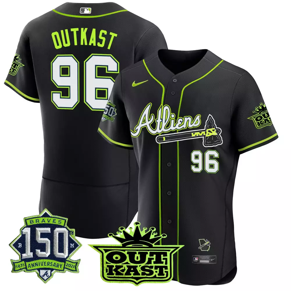 Outkast Black Men’s Atlanta Braves ATLiens 150th Anniversary Patch Flex Base Jersey | All Stitched | Fan Gear for Game Day | For Men, Women & You;Outkast Cool Base Atlanta Braves Custom Jersey V2 | All Stitched | Fan Gear for Men, Women & Youth;Outkast Cool Base Atlanta Braves Custom Jersey V3 | All Stitched | Perfect Fan Gear for Men, Women & Youth;Outkast Cool Base Custom Jersey | Atlanta Braves Navy Galaxy Version Stitched | For Men, Women & Youth;Outkast Cool Base Custom Jersey V2 | Atlanta Braves Navy Stitched | Perfect Fan Gear | For Men, Women & Youth