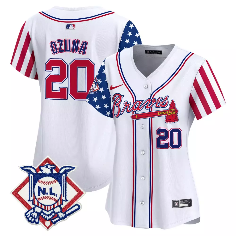 Ozuna 20 Atlanta Braves 2024 White Jersey | Fourth of July All Stitched Vapor | Fan Gear for Women