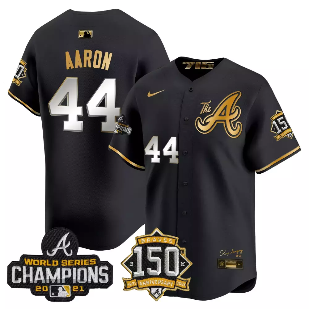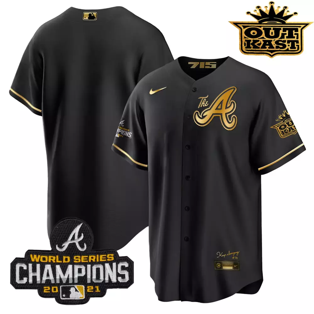 Ozzie Albies 44 Black All Stitched Jersey | 2021 Champions Name Patch | Atlanta Braves Limited Edition | For Men, Women & Youth