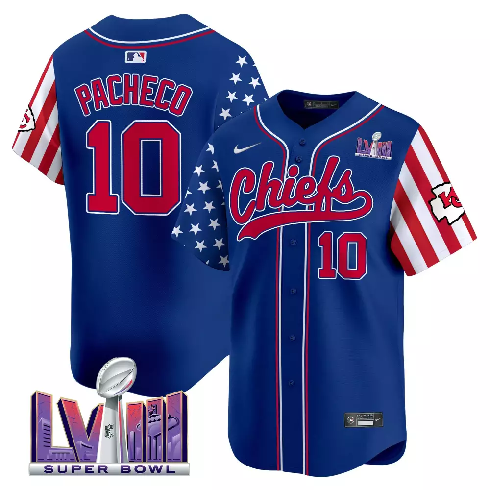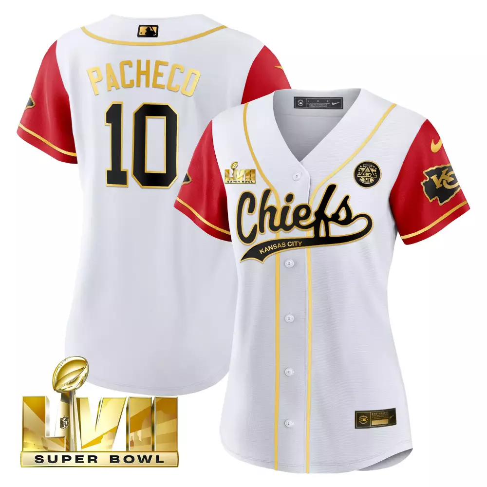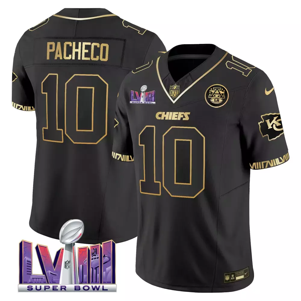 Pacheco 10 Kansas City Chiefs 2023 Stitched Jersey | Black Name Patch | Super Bowl LVIII Edition | For Men, Women & Youth