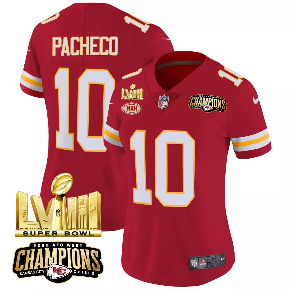 Pacheco Kansas City Chiefs 2023 Women’s Red Vapor Jersey | Champions Edition | Fan Gear for Men, Women & Youth;Pacheco Kansas City Chiefs 2023 Women’s Red Vapor Jersey | Champions Edition 1 | Limited Edition Fan Gear | For Men, Women & Youth;Pacheco Kansas City Chiefs 2023 Women’s Red Vapor Jersey | LVII Patch | Fan Gear for Men, Women & Youth;Pacheco Kansas City Chiefs 2023 Women’s Red Vapor Jersey | LVII Patch | Fan Gear for Men, Women & Youth;Pacheco Kansas City Chiefs 2023 Women’s Red Vapor Jersey | LVII Super Bowl Edition | Fan Gear for Men, Women & Youth