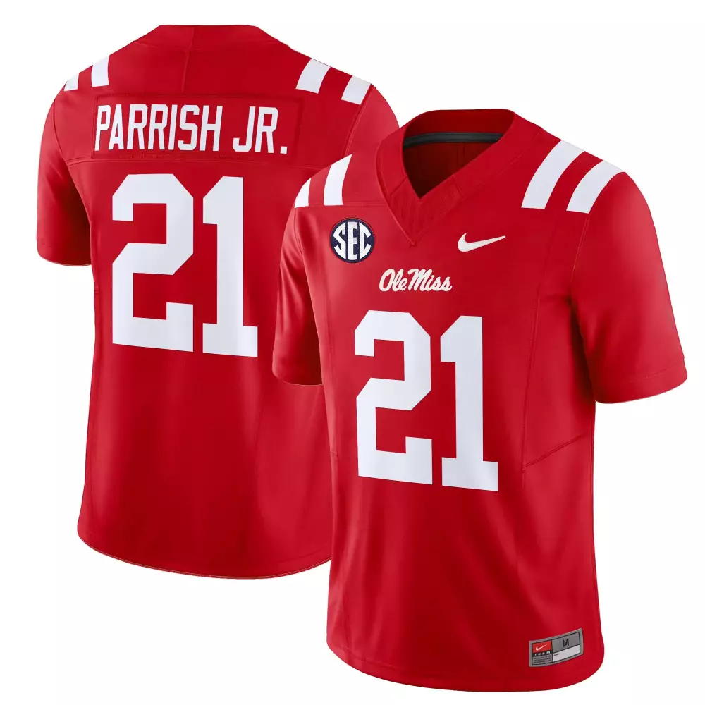 Parrish Jr 21 Men’s Ole Miss Rebels White Vapor Jersey | All Stitched 2025 | Embroidered Patch | Fan Gear for Men, Women & Youth;Parrish Jr 21 Men’s Red Ole Miss Rebels Vapor Jersey | All Stitched | Embroidered Patch 2025 | Fan Gear for Men, Women & Youth;Parrish Jr 21 Men’s Red Ole Miss Rebels Vapor Limited Jersey | All Stitched 2025 | Fan Gear for Men, Women & Youth;Parrish Jr 21 Men’s Vapor Jersey Ole Miss Rebels White 2025 | All Stitched SEC Patch | Fan Gear for Men, Women & Youth;Parrish Jr 21 Ole Miss Rebels Navy All Stitched Jersey | 2025 Name Patch | Replica Fan Gear for Men, Women & Youth