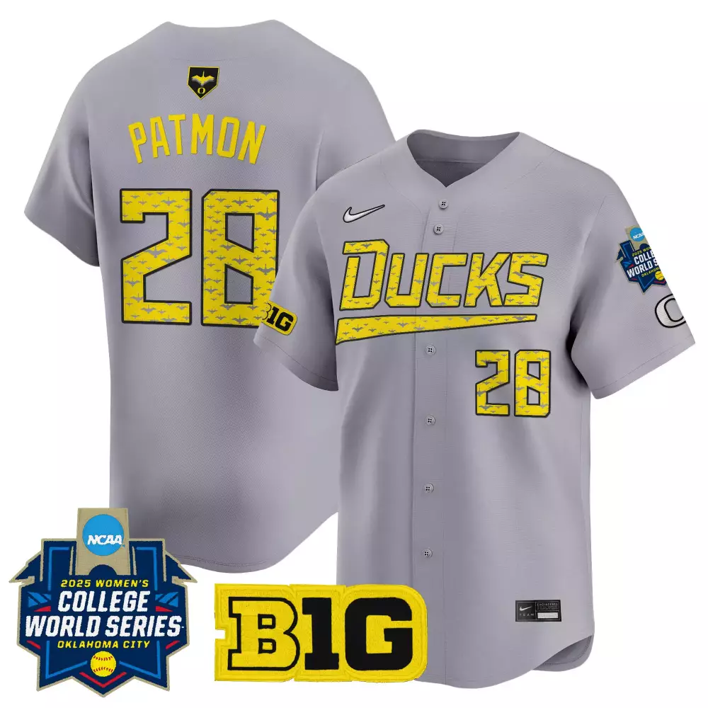 Patmon 28 Men’s Vapor Jersey Oregon Ducks Yellow | 2025 Women’s College World Series Stitched | Fan Gear for Men, Women & Youth;Patmon 28 Women’s Oregon Ducks Green Vapor Jersey | 2025 WCWS Embroidered Patch | Fan Gear for Men, Women & Youth;Patmon 28 Women’s Stitched Vapor Jersey Oregon Ducks Gray | 2025 WCWS Embroidered Patch | Fan Gear for Men, Women & Youth;Sam Taimani Black Alternate Oregon Ducks Mighty Oregon Ducks 1984 Throwback Jersey | Custom Stitched for Men | Fan Gear for Men, Women & Youth;Sam Taimani Black Oregon Ducks 1984 Throwback Jersey | Stitched Men’s Style | Game Day Outfit | For Men, Women & Youth