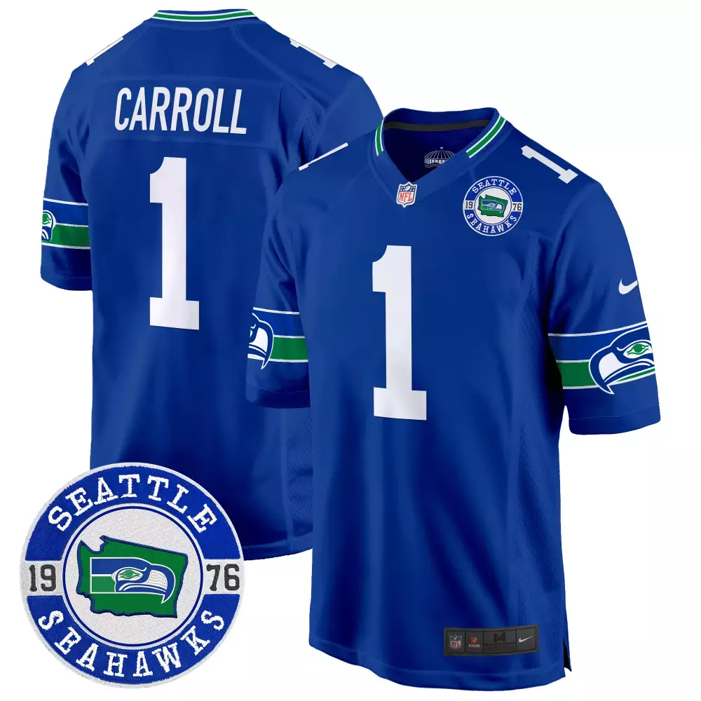 Pete Carroll Seattle Seahawks Throwback Game Jersey | Royal Alternate with Seattle Est 1976 Patch | All Stitched | For Men, Women & Youth;Pete Carroll Seattle Seahawks Throwback Game Jersey | Royal with Seattle Est 1976 Patch | All Stitched | For Men, Women & Youth;Pete Carroll Seattle Seahawks Throwback Game Jersey | Split Design with Seattle Est 1976 Patch | All Stitched | For Men, Women & Youth;Pete Carroll Seattle Seahawks Throwback Game Jersey | White with Seattle Est 1976 Patch | All Stitched | For Men, Women & Youth;Pete Carroll Seattle Seahawks Throwback Vapor Limited Jersey | All Stitched | Fan Gear for Men, Women & Youth