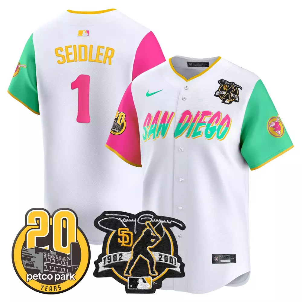 Peter Seidler City Connect Men’s San Diego Padres Tony Gwynn Jersey | Vapor Premier Limited Edition | Fan Gear for Men, Women & Youth;Peter Seidler City Connect Women’s San Diego Padres 2024 Jersey | Vapor Premier Limited Edition | Fan Gear for Men, Women & Youth;Peter Seidler City Connect Women’s San Diego Padres 2024 Tony Gwynn Jersey | Vapor Premier Limited Edition | Fan Gear for Men, Women & Youth;Peter Seidler City Connect Women’s San Diego Padres 2024 World Tour Jersey | Vapor Premier Limited Edition | Fan Gear for Men, Women & Youth;Peter Seidler City Connect Women’s San Diego Padres 20th Patch Jersey | Vapor Premier Limited Edition | Fan Gear for Men, Women & Youth
