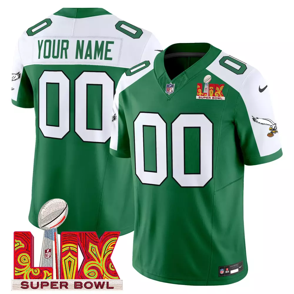 Philadelphia Eagles Kelly Green Super Bowl LIX Patch Vapor Limited Custom Jersey | Celebrate in Style | Ideal Gift for NFL Fans | For Men, Women & Youth