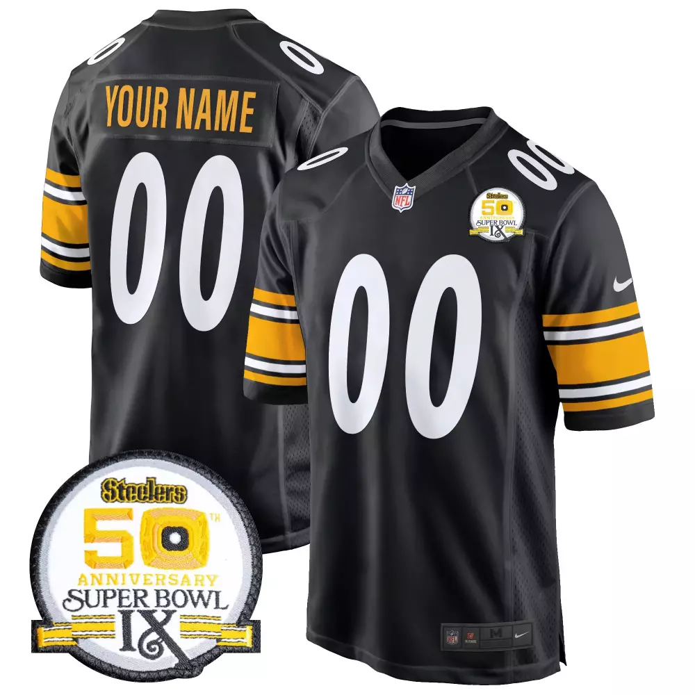 Pittsburgh Steelers Black Gold Vapor Custom Jersey | Stitched Edition | For Men, Women & Youth;Pittsburgh Steelers Black Gold Women’s DMR Patch Jersey | Vapor Limited Edition | For Women & Youth;Pittsburgh Steelers Black Men’s 2024 Vapor Limited Custom Jersey | Est 1933 Patch | Fan Gear for Game Day | For Men, Women & Youth;Pittsburgh Steelers Black Men’s 2024 Vapor Limited Custom Jersey | Stitched Design | Fan Gear for Game Day | For Men, Women & Youth;Pittsburgh Steelers Black Men’s 50th Anniversary Super Bowl IX Game Custom Jersey | Stitched Design | For Men, Women & Youth