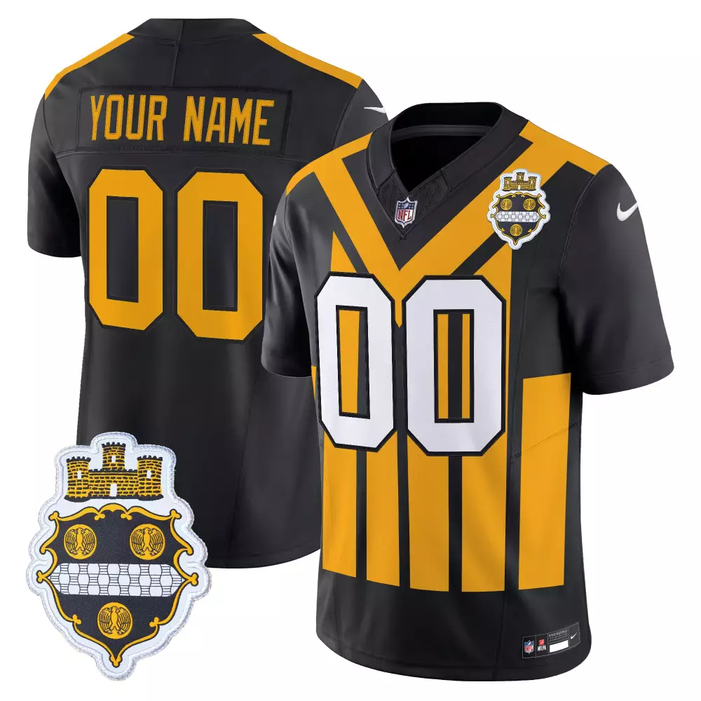 Pittsburgh Steelers Men’s Air Force Jersey | 2024 Salute to Service Patch | Limited Edition Vapor | Fan Gear for Men;Pittsburgh Steelers Men’s Black Gold Stitched Jersey 2023 | Fan Gear for Men, Women & Youth;Pittsburgh Steelers Men’s Throwback Bumblebee Custom Jersey | Stitched Design | Fan Gear for All | For Men;Pittsburgh Steelers Nike Alternate Custom Game Jersey Black | Authentic NFL Apparel | For Men, Women & Youth;Pittsburgh Steelers Nike Custom Game Jersey Black | Stylish NFL Gear | For Men, Women & Youth