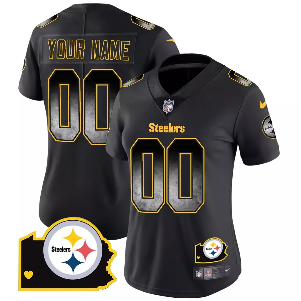 Pittsburgh Steelers Women’s 50th Anniversary Super Bowl IX Patch Vapor Limited Jersey | Custom Stitched | Fan Gear for Game Day | For Men, Women & Youth;Pittsburgh Steelers Women’s Air Force Jersey | 2024 Salute to Service Patch | Limited Edition Vapor | Fan Gear for Women;Pittsburgh Steelers Women’s Arch Smoke Home Patch Vapor Custom Jersey | All Stitched | Limited Edition Fan Gear | For Men, Women & Youth;Pittsburgh Steelers Women’s Arch Smoke Vapor Custom Jersey | All Stitched | Stylish Fan Gear for Game Day | For Men, Women & Youth;Pittsburgh Steelers Women’s Black Stitched Jersey 2023 Name Patch | Stylish Fan Gear | For Women