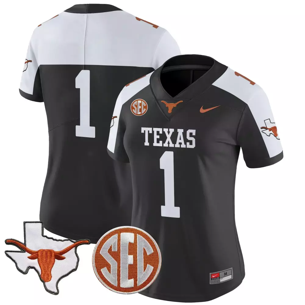 Player Name 1 Texas Longhorns 2023 Men’s All Stitched Vapor Jersey | White Texas Patch | For Men, Women & Youth;Player Name None Texas Longhorns 2025 Women’s Black Vapor Jersey | SEC Patch | Limited Edition | For Women, Men & Youth;Player Name Not Visible Texas Longhorns 2025 Women’s Orange Vapor Stitched Jersey | SEC Patch | For Women, Men & Youth;Player Texas 1 Women’s Texas Longhorns 2025 Black Vapor Jersey | SEC & Texas Map Patches | Game Day Outfit for Men, Women & Youth;Player Unknown Number 1 Texas Longhorns 2025 Vapor Stitched Jersey | Orange SEC Patch | For Men, Women & Youth