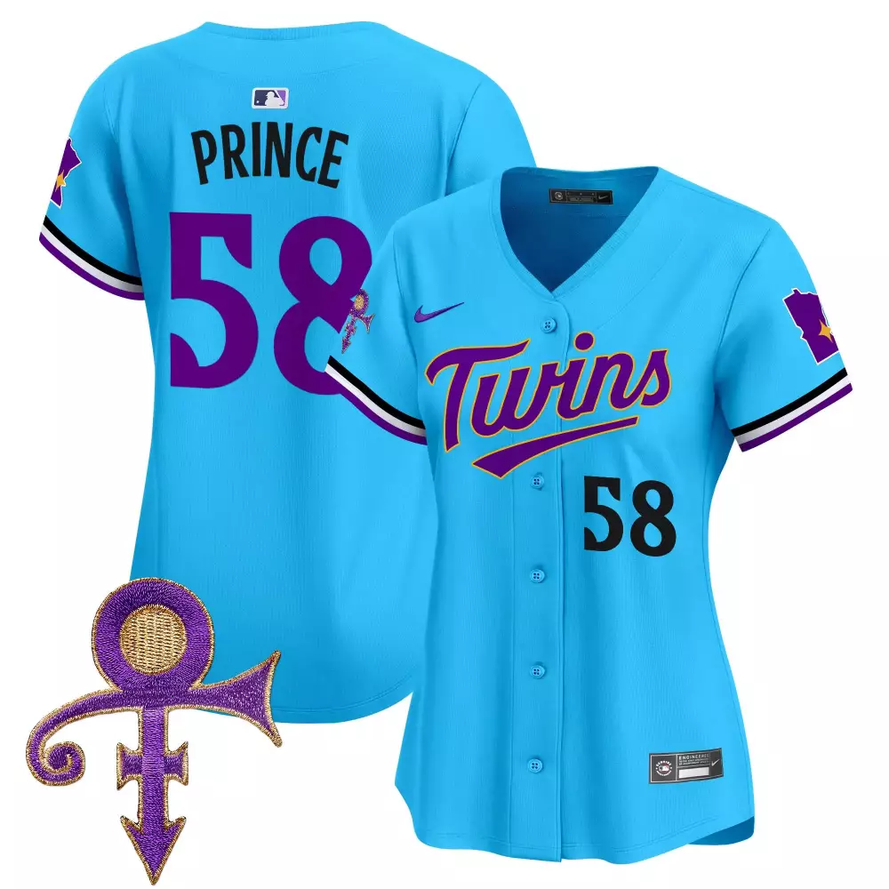 Prince 58 Minnesota Twins 2023 Women’s Stitched Vapor Jersey | Purple Edition with Patch | Limited Edition | For Men, Women & Youth;Prince 58 Minnesota Twins 2023 Women’s Stitched Vapor Jersey | With Patch | Game Day Outfit | For Men, Women & Youth;Prince 58 Minnesota Twins 2023 Women’s Stitched Vapor Jersey | With Prince Patch Red | Limited Edition | For Men, Women & Youth;Prince 58 Minnesota Twins 2023 Women’s Stitched Vapor Jersey | With Purple Patch | Fan Gear | For Men, Women & Youth;Prince 58 Minnesota Twins Blue Vapor Premier Limited Jersey | All Stitched | For Men, Women & Youth