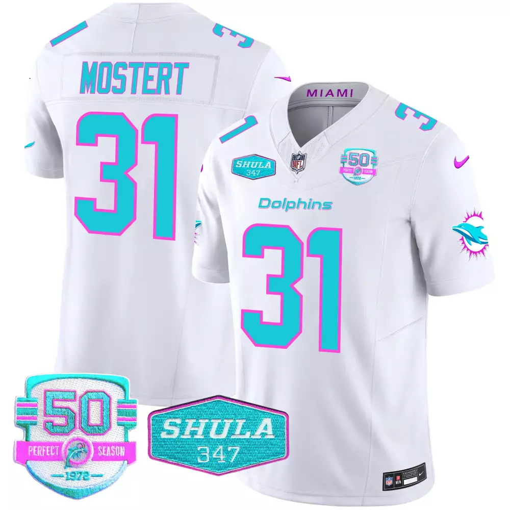Raheem Mostert White Men’s Miami Dolphins Dan the Man Record Breaker Patch Vapor Limited Jersey | Stitched Fan Gear | For Men, Women & Youth;Raheem Mostert White Men’s Miami Dolphins Miami Vice Vapor Limited Jersey V2 | Stitched Fan Gear | For Men, Women & Youth;Rashard Lawrence Miami Dolphins Nike Team Game Jersey | Aqua Style | All Stitched Fan Gear | For Men, Women & Youth;River Cracraft Miami Dolphins Nike Women’s Game Player Jersey | Aqua Style | All Stitched Fan Gear | For Women;Robinson 44 Miami Dolphins 2023 Men’s Vapor Jersey | Black Limited Edition | All Stitched Fan Gear | For Men, Women & Youth