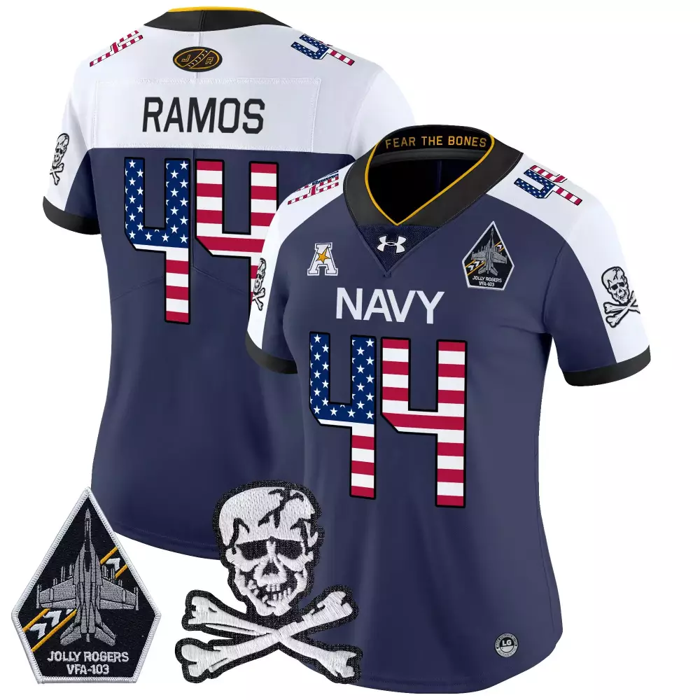 Ramos 44 Women’s Navy Vapor Jersey | 2025 Independence Day with Jolly Rogers Patch | Limited Edition Fan Gear | For Men, Women & Youth