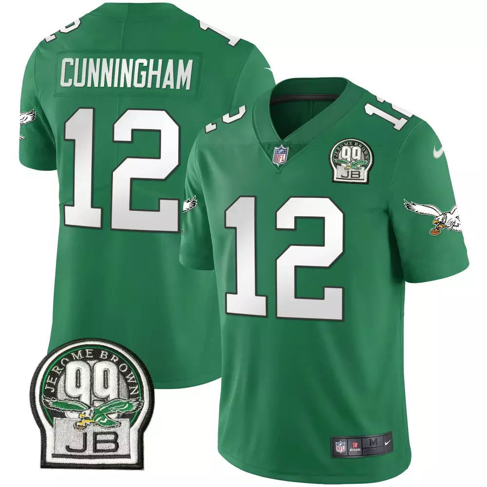 Randall Cunningham Philadelphia Eagles Jerome Brown Patch Kelly Green Gold Trim Jersey | Stitched Fan Gear for Men, Women & Youth;Randall Cunningham Philadelphia Eagles Jerome Brown Retired Patch Black Gold Kelly Jersey | All Stitched | For Men;Randall Cunningham Philadelphia Eagles Jerome Brown Retired Patch Gold Kelly Jersey | All Stitched | For Women & Youth;Randall Cunningham Philadelphia Eagles Jerome Brown Retired Patch Gold Kelly Jersey | Stitched Fan Gear | For Men, Women & Youth;Randall Cunningham Philadelphia Eagles Jerome Brown Retired Patch Gold Kelly Jersey | Stitched Fan Gear for Men, Women & Youth