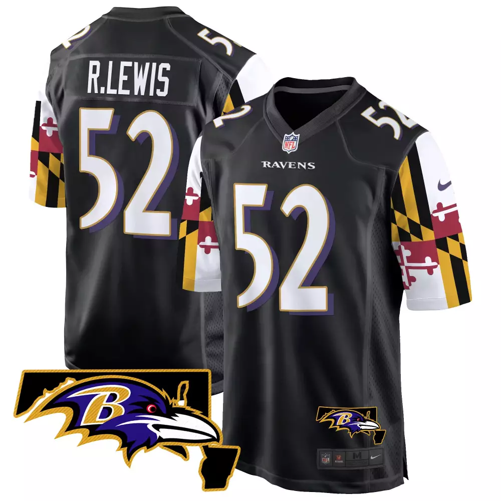 Ray Lewis Baltimore Ravens Maryland Flag 2024 AFC North Division Champions Patch Vapor Limited Jersey | Stitched Design | Fan Gear for Men, Women & Youth