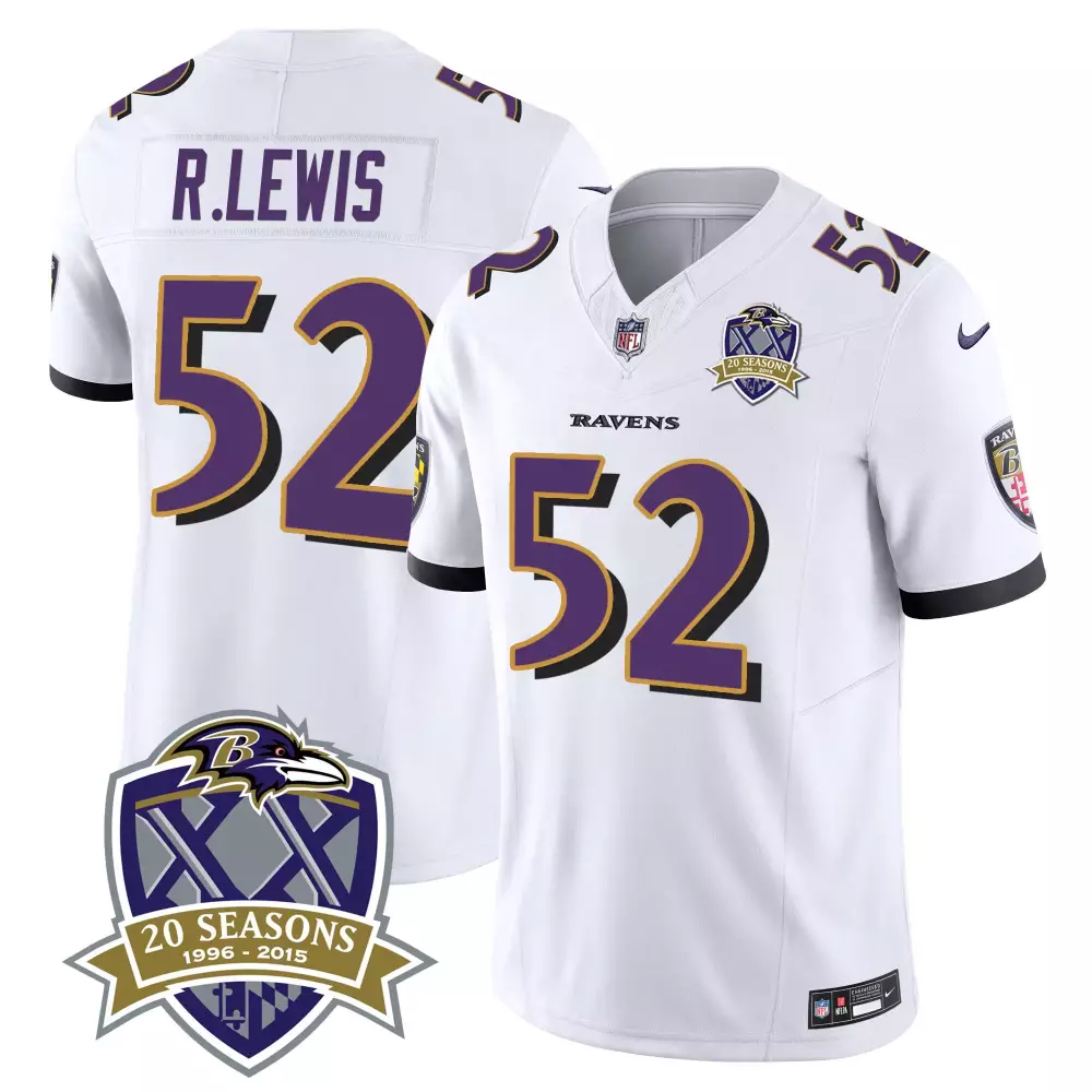 Ray Lewis Baltimore Ravens White 20th Season Patch Baseball Jersey | Stitched Design | Fan Gear for Men, Women & Youth