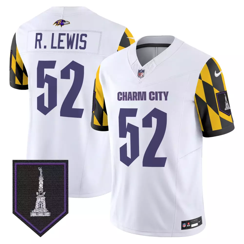 Ray Lewis Baltimore Ravens White 20th Season Patch Baseball Jersey | Stitched Design | Fan Gear for Men, Women & Youth;Ray Lewis Baltimore Ravens White 20th Season Patch Vapor Limited Jersey | Stitched Design | Fan Gear for Men, Women & Youth;Ray Lewis Baltimore Ravens White City Edition Patch Vapor Limited Jersey | Stitched Design | Fan Gear for Men, Women & Youth;Ray Lewis Baltimore Ravens White Jacoby Jones Patch Vapor Limited Jersey | Stitched Design | Fan Gear for Men, Women & Youth;Ray Lewis Baltimore Ravens White Joe D Jacoby Patch Vapor Limited Jersey | Stitched Design | Fan Gear for Men, Women & Youth