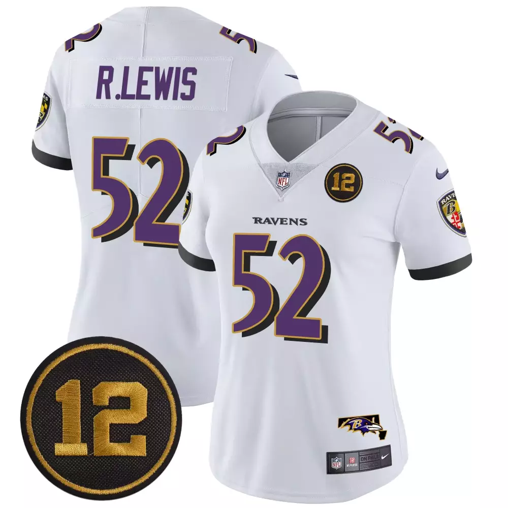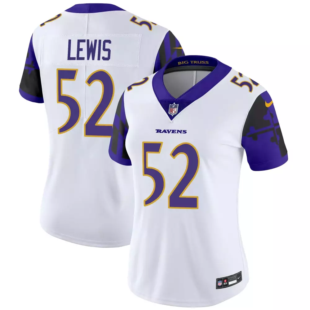 Ray Lewis Baltimore Ravens Women’s White City Edition Patch Vapor Limited Jersey | Stitched Fan Gear for Women & Youth