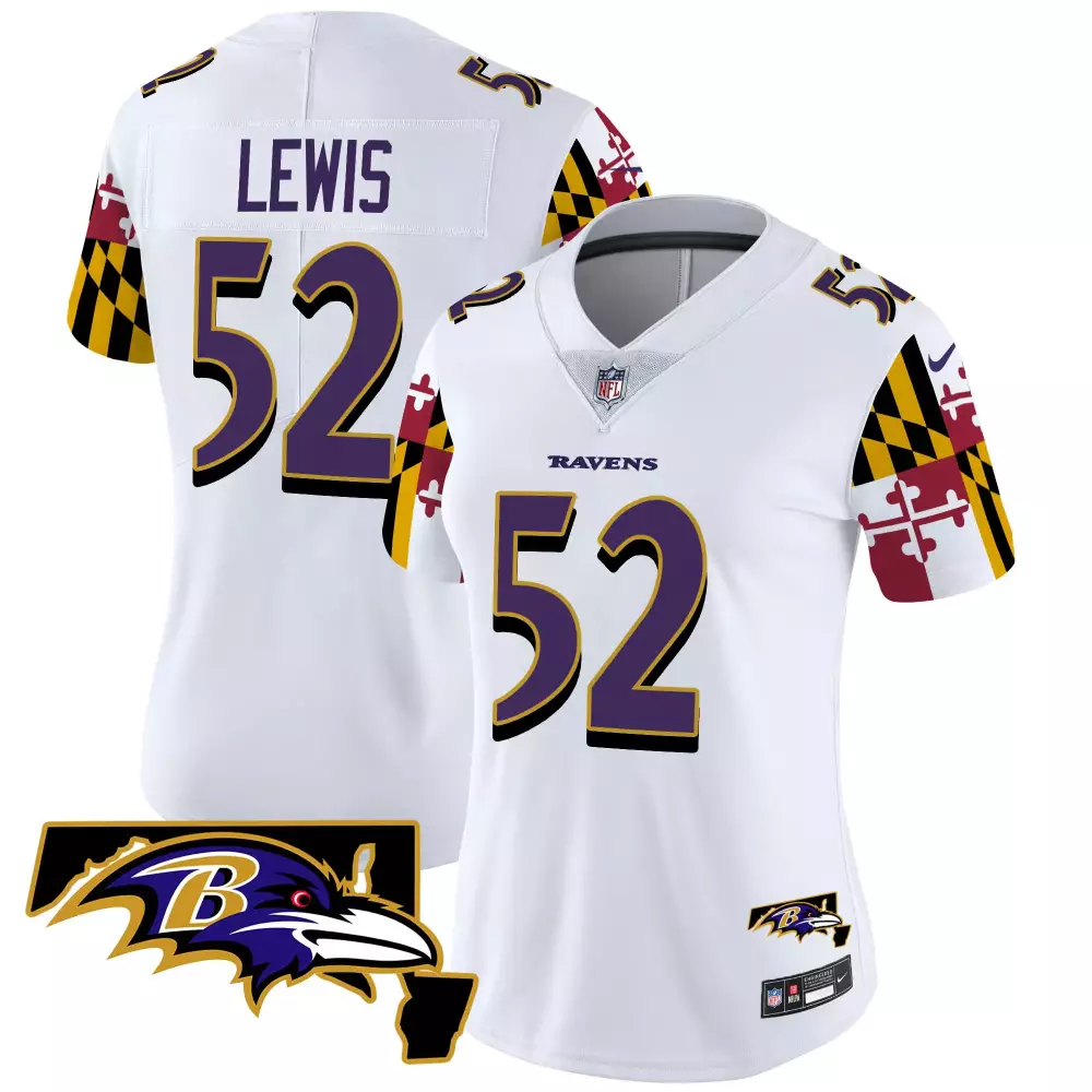 Ray Lewis Baltimore Ravens Women’s White City Edition Patch Vapor Limited Jersey | Stitched Fan Gear for Women & Youth;Ray Lewis Baltimore Ravens Women’s White Jacoby Jones Patch Vapor Limited Jersey | Stitched Fan Gear for Women & Youth;Ray Lewis Baltimore Ravens Women’s White Maryland Flag 2024 AFC North Champions Patch Vapor Limited Jersey | Stitched Fan Gear for Women & Youth;Ray Lewis Baltimore Ravens Women’s White Maryland Flag Vapor Limited Jersey | Stitched Fan Gear for Women & Youth;Ray Lewis Baltimore Ravens Women’s White Maryland Flag Vapor Limited Jersey V2 | Stitched Fan Gear for Women & Youth
