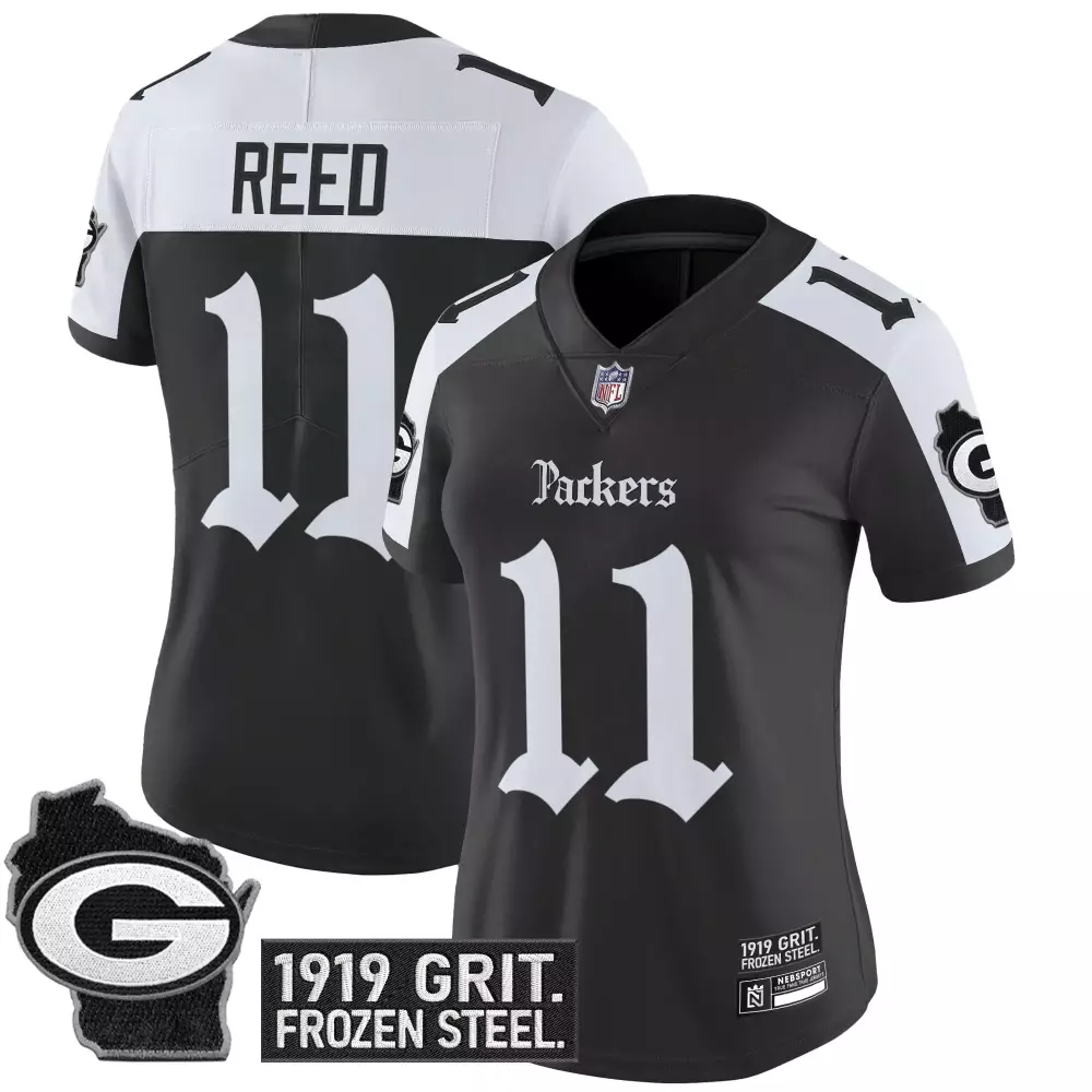 Reed 11 Women’s Green Bay Packers Stitched Jersey | Black 1919 Grit Frozen Steel Edition 2023 | Replica Fan Gear | For Men, Women & Youth