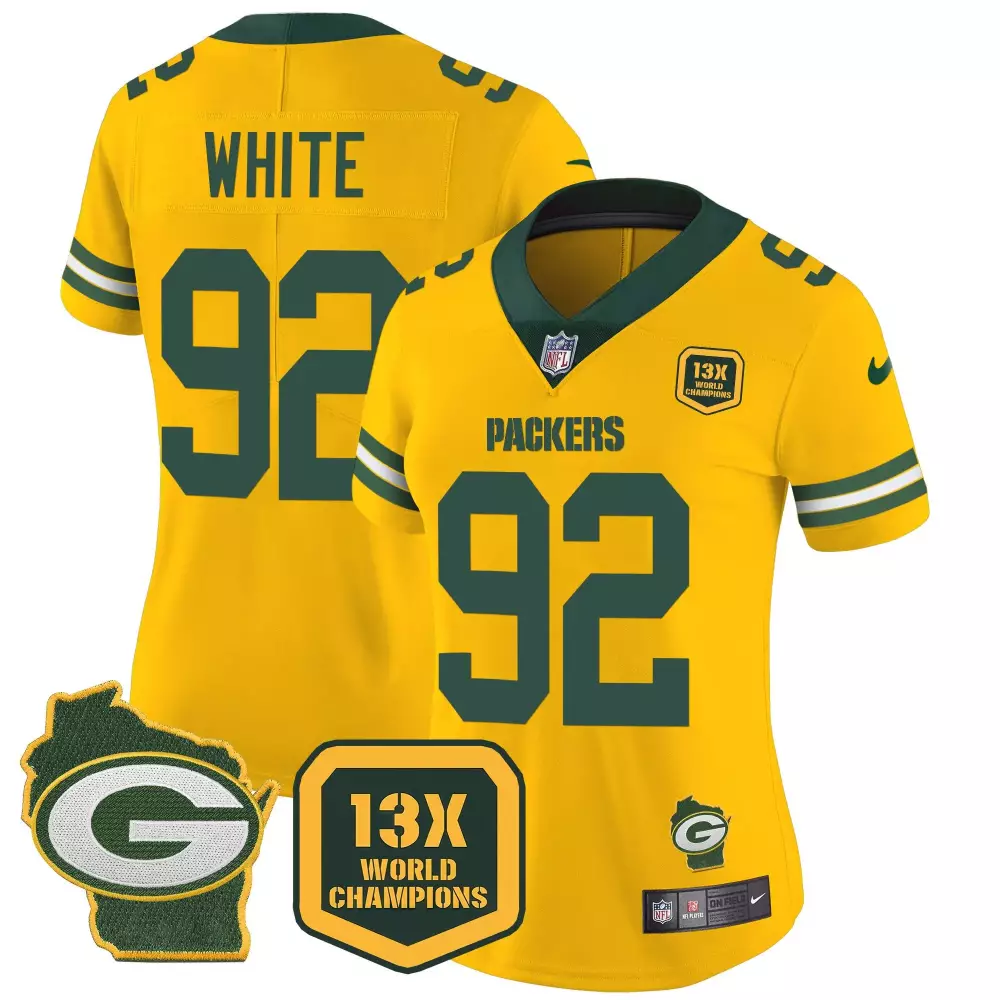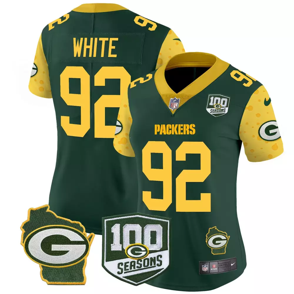 Reggie White White Men’s Green Bay Packers Throwback 100th Season Patch Vapor Limited Jersey | Stitched Fan Gear | For Men;Reggie White Women’s Green Bay Packers 100th Season Home Patch Cheese Vapor Limited Jersey | All Stitched Fan Gear | For Women;Reggie White Women’s Green Bay Packers 100th Season Home Patch Cheese Vapor Limited Jersey | Stitched Fan Gear | For Women;Reggie White Women’s Green Bay Packers 100th Season Jersey | Stitched Home Patch | Limited Edition Fan Gear for Men, Women & Youth;Reggie White Women’s Green Bay Packers 13 Time World Champions Home Patch Vapor Jersey | All Stitched Fan Gear | For Women
