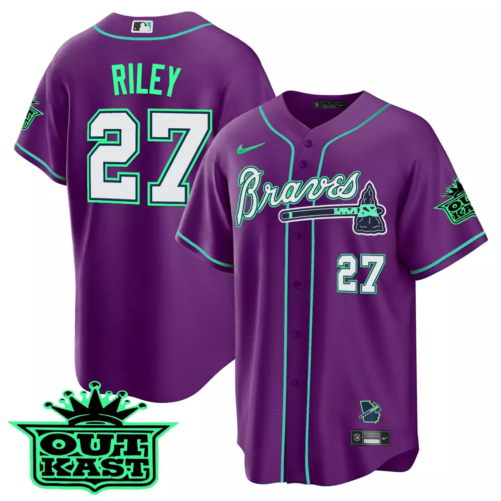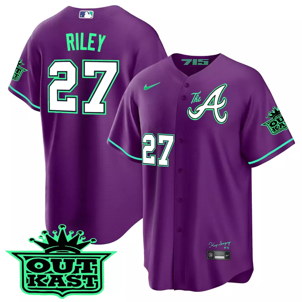 Riley 27 Atlanta Braves 2023 Purple Outkast Edition Jersey | All Stitched Vapor | Fan Gear for Men, Women & Youth