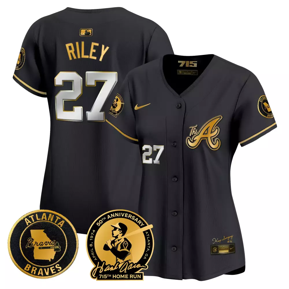 Riley 27 Atlanta Braves 2023 Women’s Stitched Jersey | Navy Design with Name Patch | Outkast Style | For Women & Youth;Riley 27 Atlanta Braves 2023 Women’s Stitched Vapor Jersey | Big Peach Edition | Limited Edition Fan Gear | For Men, Women & Youth;Riley 27 Atlanta Braves 2023 Women’s Stitched Vapor Jersey | Big Peach Edition | Limited Edition Fan Gear | For Men, Women & Youth;Riley 27 Atlanta Braves 2023 Women’s Stitched Vapor Jersey | Black 715th Home Run Edition | For Game Day | For Men, Women & Youth;Riley 27 Atlanta Braves 2023 Women’s Stitched Vapor Jersey | Black Gold 715th Home Run Edition | For Game Day | For Men, Women & Youth