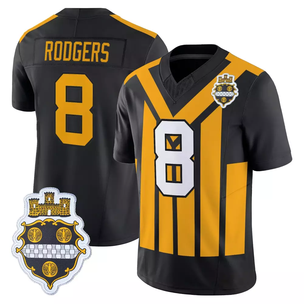 Rodgers 8 Men’s Stitched Vapor Jersey | Pittsburgh Steelers 1933 Patch White | Fan Gear | For Men, Women & Youth;Rodgers 8 Pittsburgh Steelers 1933 Patch Stitched Vapor Jersey | Yellow Limited Edition Fan Gear | For Men, Women & Youth;Rodgers 8 Pittsburgh Steelers Black City Edition Jersey | 2023 Born from Coal Patch | Limited Edition Fan Gear | For Men, Women & Youth;Rodgers 8 Pittsburgh Steelers Black Stitched Jersey | 2023 Name Patch | For Men, Women & Youth;Rodgers 8 Pittsburgh Steelers Black Stitched Vapor Jersey | 1933 Patch Limited Edition | For Men, Women & Youth
