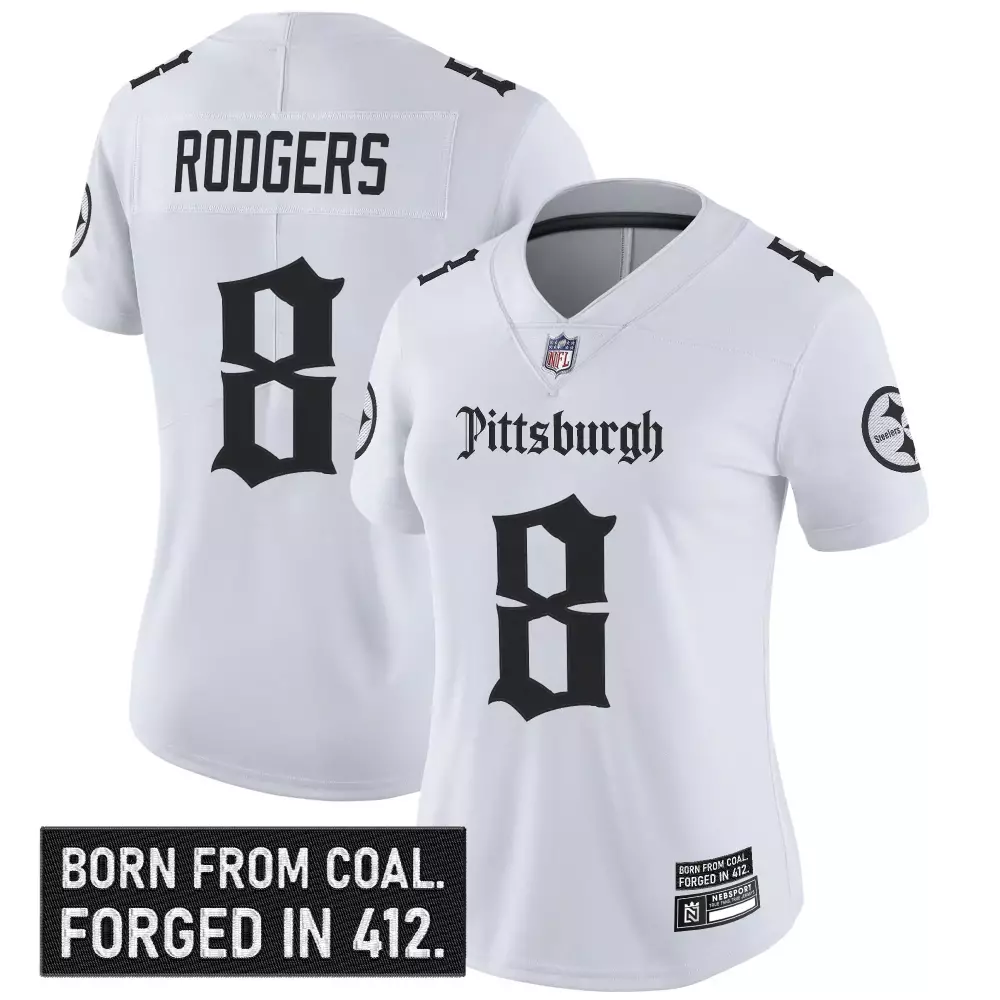 Rodgers 8 Women’s Pittsburgh Steelers Black Stitched Vapor Jersey | 2023 Edition Forged in 412 | For Women & Youth;Rodgers 8 Women’s Pittsburgh Steelers Black Vapor Jersey | Stitched Born from Coal Patch 2023 | For Women & Youth;Rodgers 8 Women’s Pittsburgh Steelers White Stitched Vapor Jersey | 2023 Born from Coal Patch | For Women & Youth;Rodgers Pittsburgh Steelers 1933 Patch Vapor Jersey | Black & Gold Stitched | Replica Fan Gear | For Men, Women & Youth;Roman Wilson Pittsburgh Steelers Black Game Player Jersey | Premium Fan Gear | For Men, Women & Youth