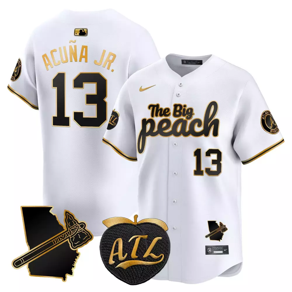 Ronald Acuña Jr. 13 Atlanta Braves Navy Stitched Jersey | The Big Peach 2023 | Limited Edition Fan Gear | For Men, Women & Yout;Ronald Acuña Jr. 13 Atlanta Braves Outkast Navy Jersey | With Patches Fan Gear | For Men, Women & Yout;Ronald Acuña Jr. 13 Atlanta Braves White Stitched Jersey | The Big Peach 2023 | Name Patch Fan Gear | For Men, Women & Yout;Ronald Acuña Jr. 1974 Throwback Jersey | Atlanta Braves Limited Edition | All Stitched Vapor Premier | Fan Gear for Men, Women & Yout;Ronald Acuña Jr. 1980 Cool Base Jersey | Atlanta Braves Throwback | All Stitched Fan Gear | For Men, Women & Yout