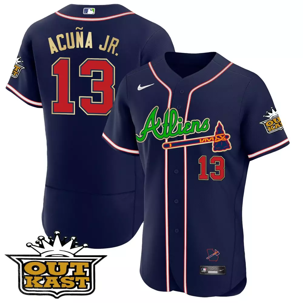 Ronald Acuna Jr. Atlanta Braves 2025 Atliens Navy Jersey | Stitched Cool Base Fan Gear | For Men, Women & Youth;Ronald Acuna Jr. Atlanta Braves 2025 Atliens Navy Jersey | Stitched Flex Base Fan Gear | For Men, Women & Youth;Ronald Acuna Jr. Atlanta Braves 2025 Atliens Navy Jersey | Stitched Flex Base Fan Gear | For Men, Women & Youth;Ronald Acuna Jr. Atlanta Braves 2025 Atliens Navy Jersey | Stitched Flex Base Gold Trim Fan Gear | For Men, Women & Youth;Ronald Acuna Jr. Atlanta Braves 2025 Atliens Navy Jersey V2 | Stitched Cool Base Fan Gear | For Men, Women & Youth