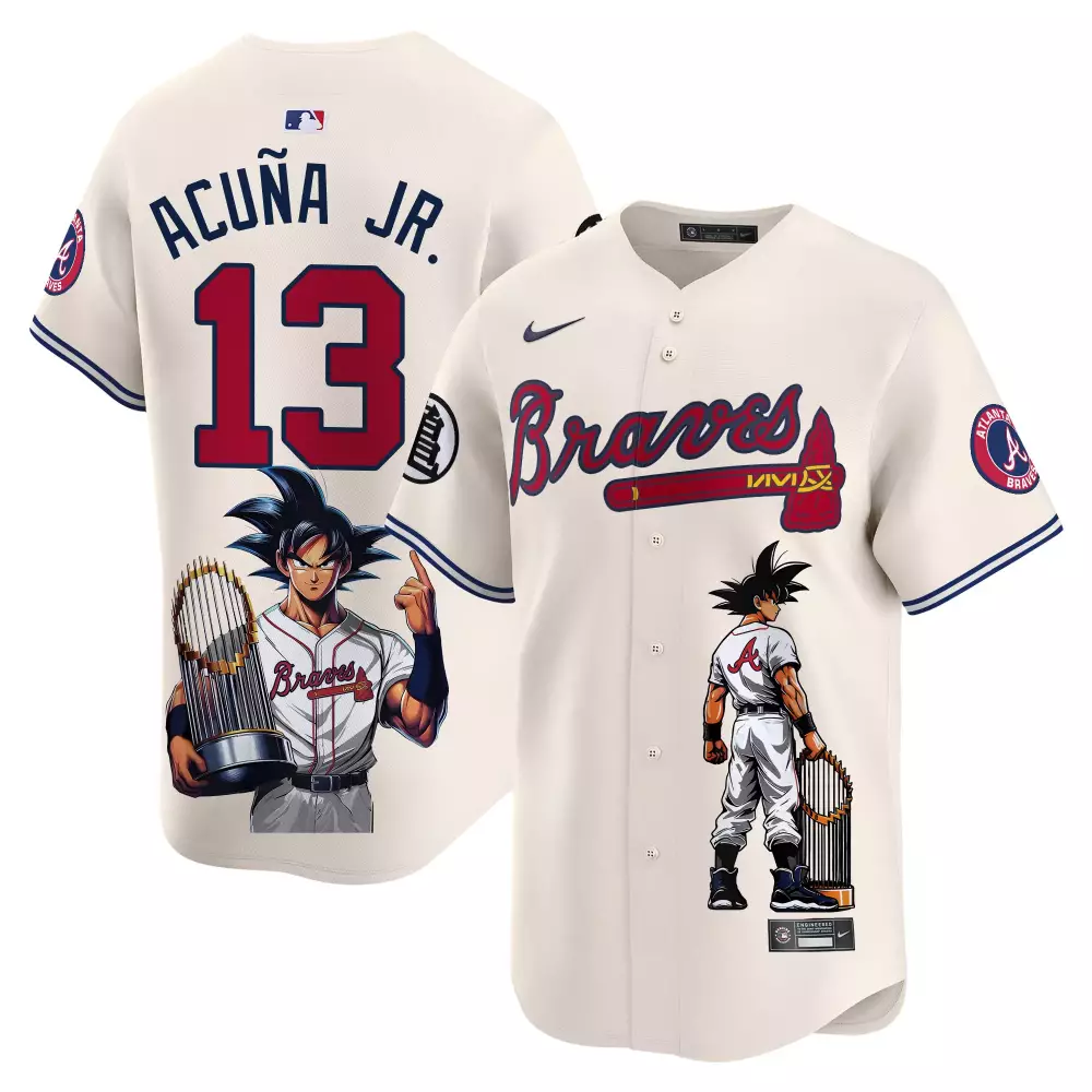 Ronald Acuna Jr. Atlanta Braves Cool Base Youth Jersey | Stitched White | Fan Gear for Game Day | For Men, Women & Youth;Ronald Acuna Jr. Atlanta Braves Cool Red Men’s Jersey | Stitched | Fan Gear for Game Day | For Men, Women & Youth;Ronald Acuna Jr. Atlanta Braves Cool White Men’s Jersey | Stitched | Fan Gear for Game Day | For Men, Women & Youth;Ronald Acuña Jr. Atlanta Braves Dragon Ball Son Goku Vapor Premier Jersey | Cream Unisex Stitched | Limited Edition Fan Gear | For Men, Women & Yout;Ronald Acuña Jr. Atlanta Braves Flex Base Black Gold Jersey | Stitched White & Gold | Limited Edition Fan Gear | For Men, Women & Yout