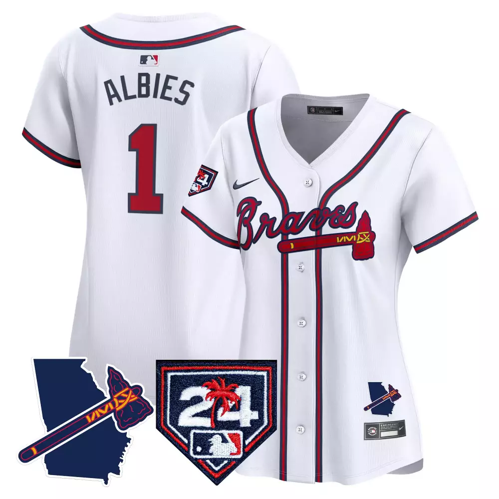 Ronald Albies 1 Atlanta Braves 2023 Women’s Stitched Vapor Jersey | White Outkast Edition | Limited Edition Fan Gear | For Women;Ronald Albies 1 Atlanta Braves 2024 Stitched Vapor Jersey | 715th Home Run Edition | Limited Edition Fan Gear | For Men, Women & Youth;Ronald Albies 1 Atlanta Braves 2024 Stitched Vapor Jersey | White Red Blue Trump Patch | Limited Edition Fan Gear | For Men, Women & Youth;Ronald Albies 1 Atlanta Braves 2024 Stitched Vapor Jersey | White with 24 Patch | Replica Fan Gear | For Men, Women & Youth;Ronald Albies 1 Atlanta Braves 2024 Women’s Stitched Vapor Jersey | White | Limited Edition Fan Gear | For Women